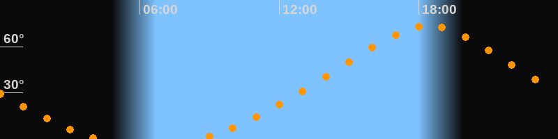 Höchster Stand (Kulmination)18:24 Uhr (h = 73,6°)