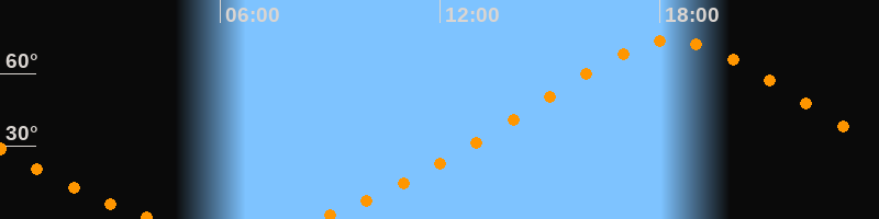 Höchster Stand (Kulmination)18:21 Uhr (h = 73,6°)
