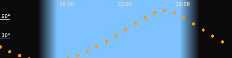 Höchster Stand (Kulmination)16:57 Uhr (h = 73,6°)