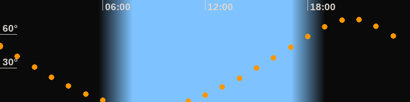 Höchster Stand (Kulmination)20:31 Uhr (h = 73,6°)
