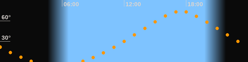 Höchster Stand (Kulmination)17:29 Uhr (h = 73,6°)