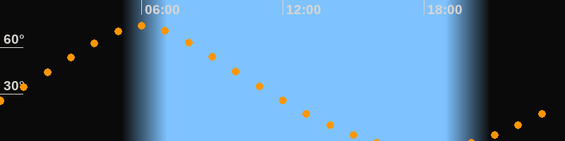 Höchster Stand (Kulmination)06:01 Uhr (h = 73,6°)