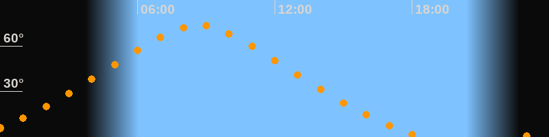 Höchster Stand (Kulmination)08:38 Uhr (h = 73,6°)