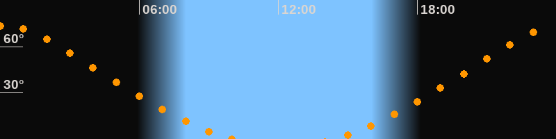 Höchster Stand (Kulmination)00:10 Uhr (h = 73,6°)