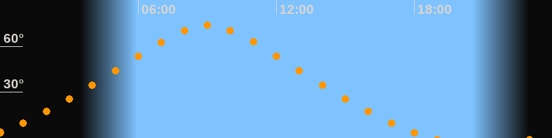 Höchster Stand (Kulmination)09:00 Uhr (h = 73,6°)