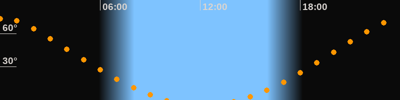 Höchster Stand (Kulmination)00:07 Uhr (h = 73,6°)
