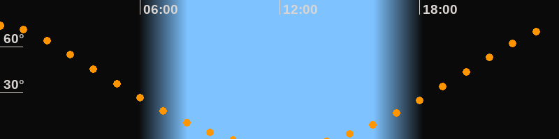 Höchster Stand (Kulmination)00:03 Uhr (h = 73,6°)