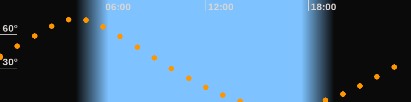 Aufgang18:30 Uhr im Nordosten (αAz = 25,4°)