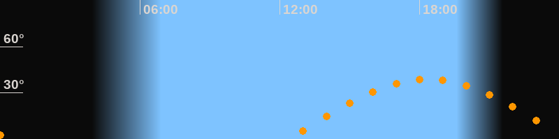 | Höchster Stand (Kulmination) | 18:21 Uhr (h = 38,7°) |
