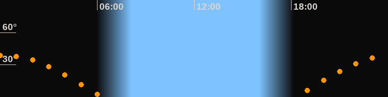 | Aufgang | 18:15 Uhr im Osten (αAz = 90,1°) |