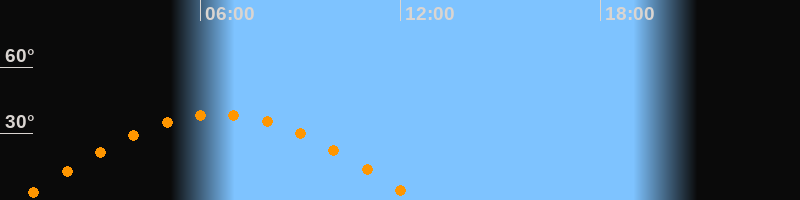 | Höchster Stand (Kulmination) | 06:33 Uhr (h = 38,7°) |