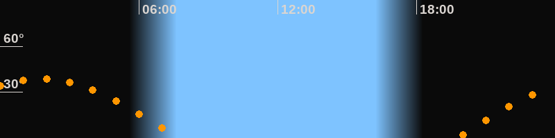 | Aufgang | 19:41 Uhr im Osten (αAz = 90,1°) |