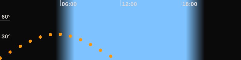 | Höchster Stand (Kulmination) | 05:40 Uhr (h = 38,8°) |