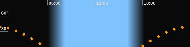 | Aufgang | 17:42 Uhr im Osten (αAz = 90,1°) |