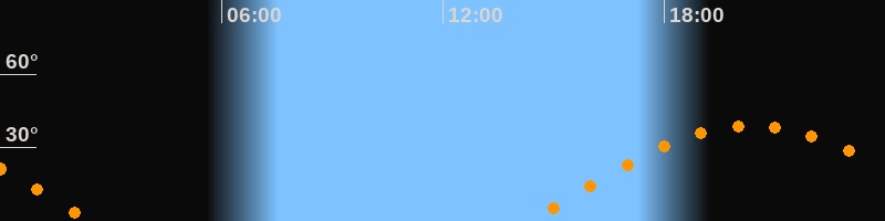 | Aufgang | 14:22 Uhr im Osten (αAz = 90,1°) |