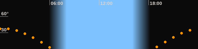 | Aufgang | 18:31 Uhr im Osten (αAz = 92°) |