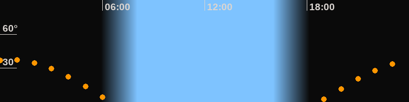 | Aufgang | 18:40 Uhr im Osten (αAz = 92°) |