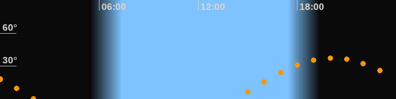 | Untergang | 02:05 Uhr im Westen (αAz = 268°) |