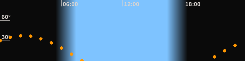 | Untergang | 08:09 Uhr im Westen (αAz = 268°) |