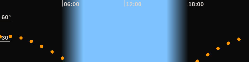| Höchster Stand (Kulmination) | 00:40 Uhr (h = 37,6°) |