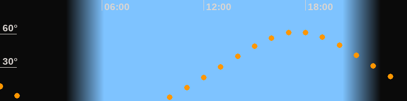 Höchster Stand (Kulmination)17:33 Uhr (h = 61,8°)