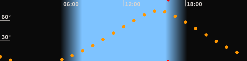 | Höchster Stand (Kulmination) | 15:21 Uhr (h = 74,2°) |