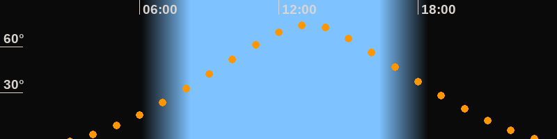 | Höchster Stand (Kulmination) | 13:15 Uhr (h = 74,2°) |