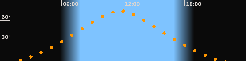 | Höchster Stand (Kulmination) | 11:40 Uhr (h = 74,2°) |