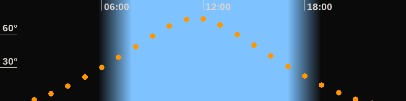 | Höchster Stand (Kulmination) | 11:33 Uhr (h = 74,2°) |