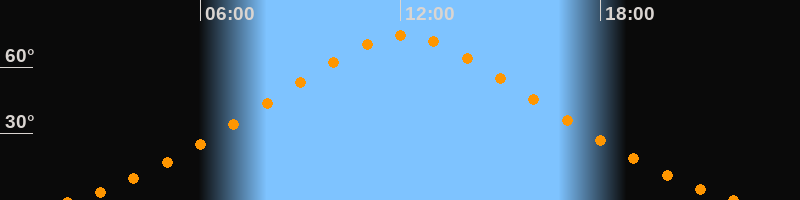 | Höchster Stand (Kulmination) | 12:06 Uhr (h = 74,2°) |