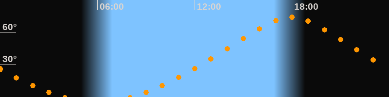 | Höchster Stand (Kulmination) | 17:57 Uhr (h = 74,2°) |