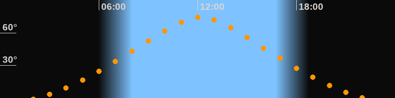 | Höchster Stand (Kulmination) | 12:09 Uhr (h = 74,2°) |