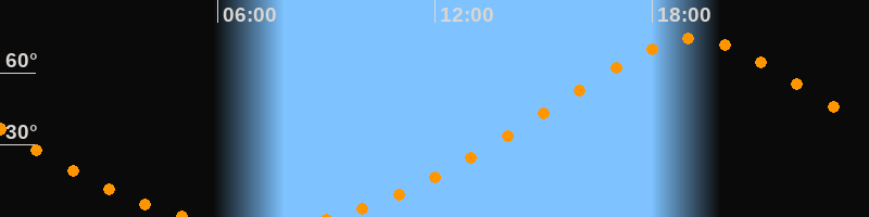 | Höchster Stand (Kulmination) | 19:08 Uhr (h = 74,2°) |
