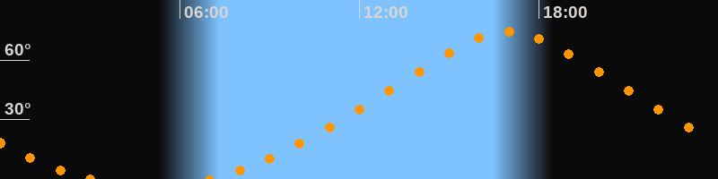 | Höchster Stand (Kulmination) | 16:59 Uhr (h = 74,2°) |