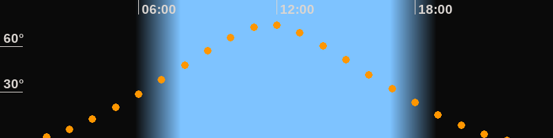| Höchster Stand (Kulmination) | 11:41 Uhr (h = 74,2°) |