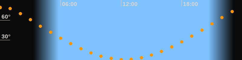Höchster Stand (Kulmination)00:17 Uhr (h = 79,5°)