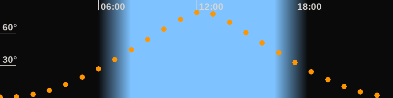 Höchster Stand (Kulmination)12:20 Uhr (h = 79,5°)
