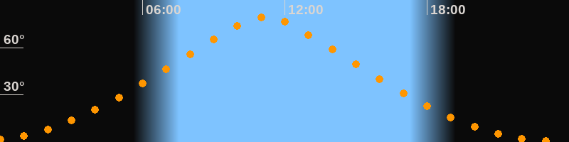 Höchster Stand (Kulmination)11:09 Uhr (h = 79,5°)