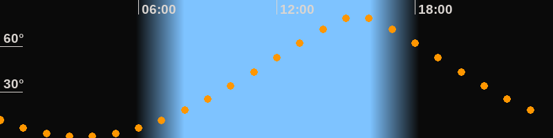 Höchster Stand (Kulmination)15:30 Uhr (h = 79,5°)