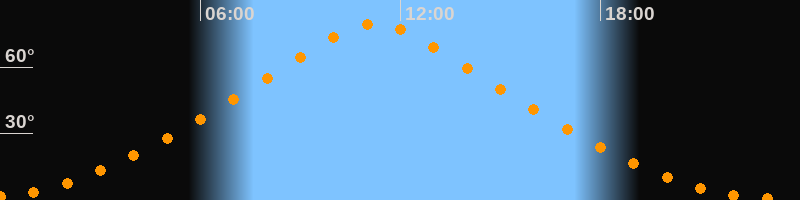 Höchster Stand (Kulmination)11:14 Uhr (h = 79,5°)