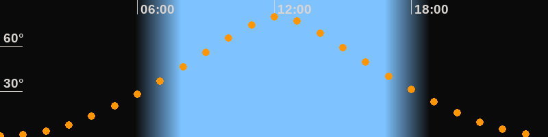 Höchster Stand (Kulmination)12:10 Uhr (h = 79,5°)