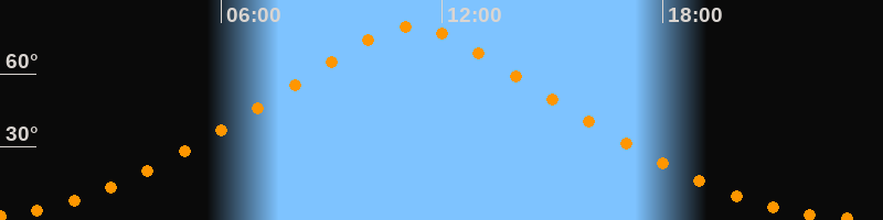 Höchster Stand (Kulmination)11:11 Uhr (h = 79,5°)