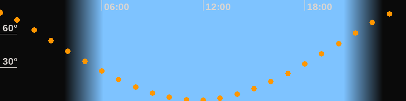 Höchster Stand (Kulmination)23:36 Uhr (h = 79,5°)