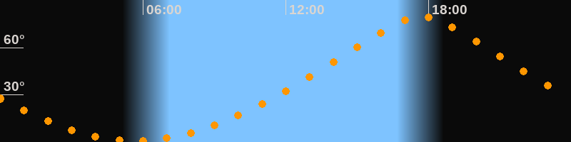 Höchster Stand (Kulmination)17:41 Uhr (h = 79,5°)