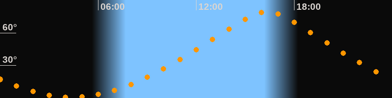 Höchster Stand (Kulmination)16:19 Uhr (h = 79,5°)