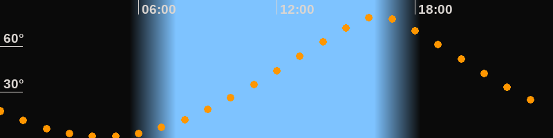 Höchster Stand (Kulmination)16:24 Uhr (h = 79,5°)
