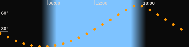 Höchster Stand (Kulmination)17:30 Uhr (h = 79,5°)