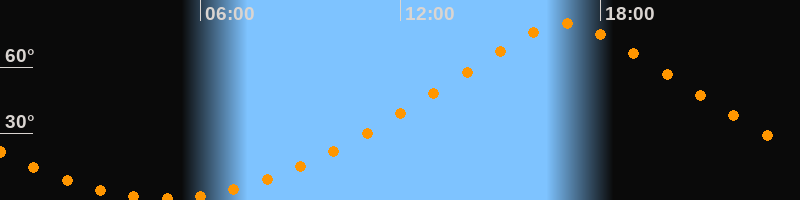 Höchster Stand (Kulmination)16:57 Uhr (h = 79,5°)