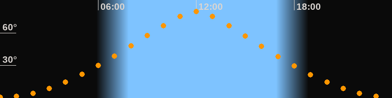 Höchster Stand (Kulmination)11:59 Uhr (h = 79,5°)