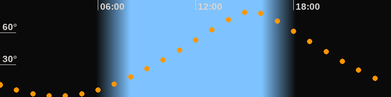 Höchster Stand (Kulmination)15:25 Uhr (h = 79,5°)